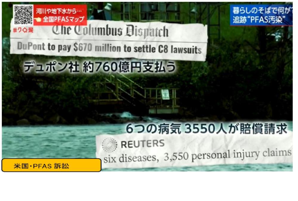 PFASの毒性は新しい環境問題である。訴訟大国でもある米国では、人の健康に関する危険性がある問題として対策を進めている。現在、米国のPFAS飲料水基準値は2024年4月に改訂され、PFOS・PFOA各々4ng(ナノグラム)/ℓ、PFHxS・PFNA・GenXが10ng/ℓ。日本と米国は水質基準のレベルが桁違いに違う。日本の水道水は、PFOS・PFOAの合計値50ng以下で、2026年4月の施行予定である。「50ng対4ng」、水質基準差異は不明だ。 ([注記] 1ng(ナノグラム)は、1gの10億分の1)