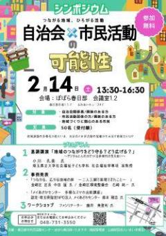 公開日:2026年01月04日センターからのおしらせぽぽら春日部【受付終了いたしました】2/14(土)「自治会*市民活動団体の可能性」シンポジウムのご案内どなたでもお気軽にご参加ください。