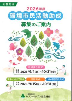 2025年08月13日ぽぽら春日部2026年度 「環境市民活動助成」(応募期間~2025.10/31,助成の種類により応募期間が異なります)セブン‐イレブン記念財団の「環境市民活動助成」は、お客様がセブン‐イレブンの店頭募金を通して、地域の...